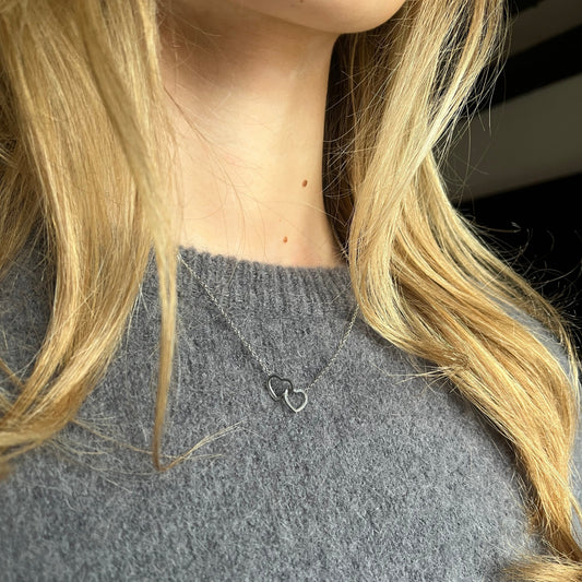 Dual Heart Necklace - Silver