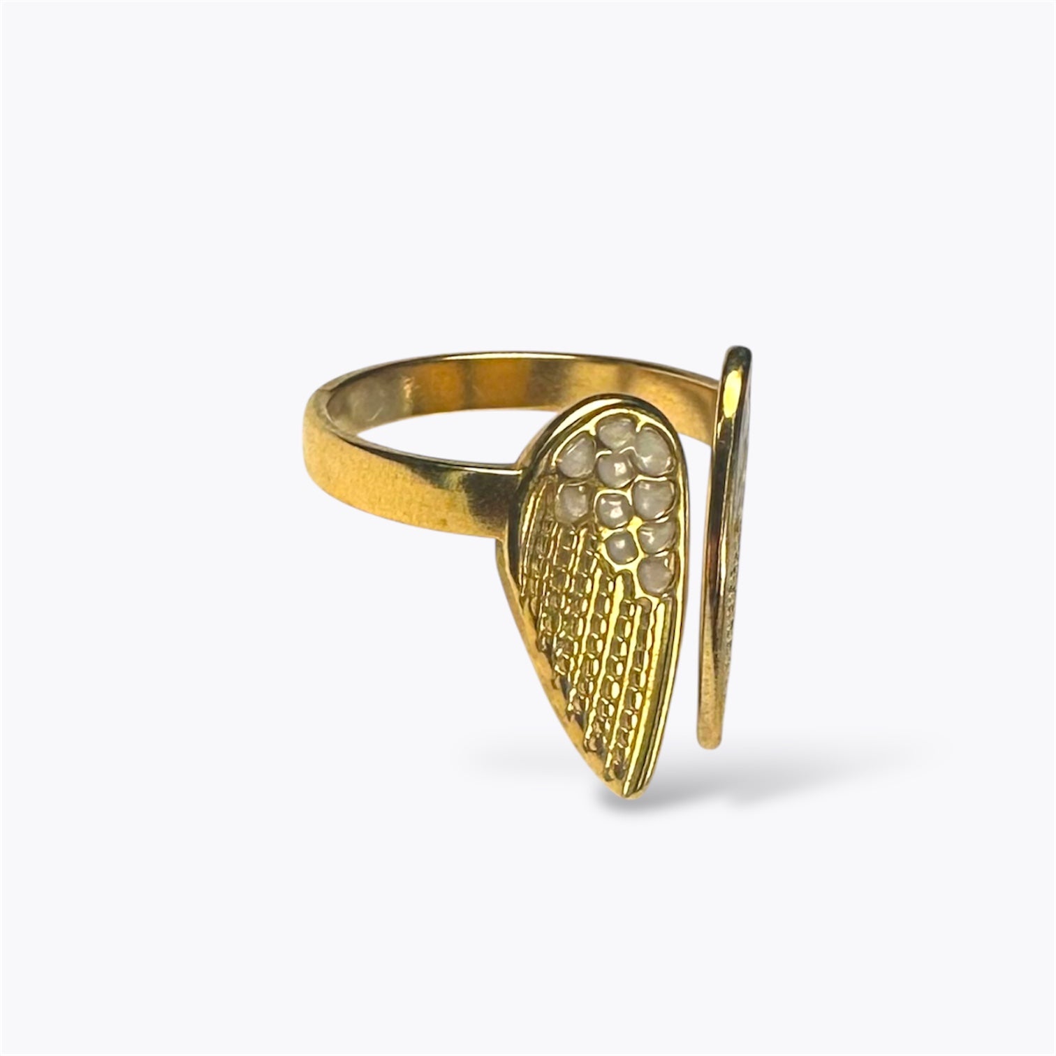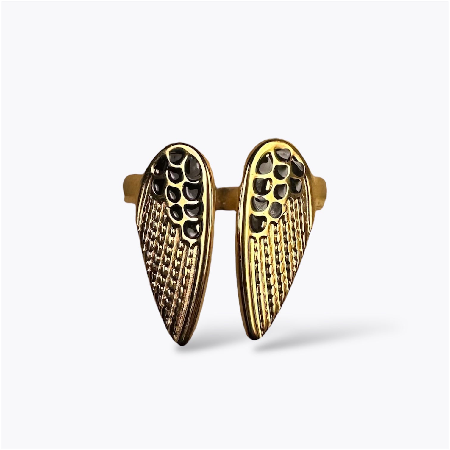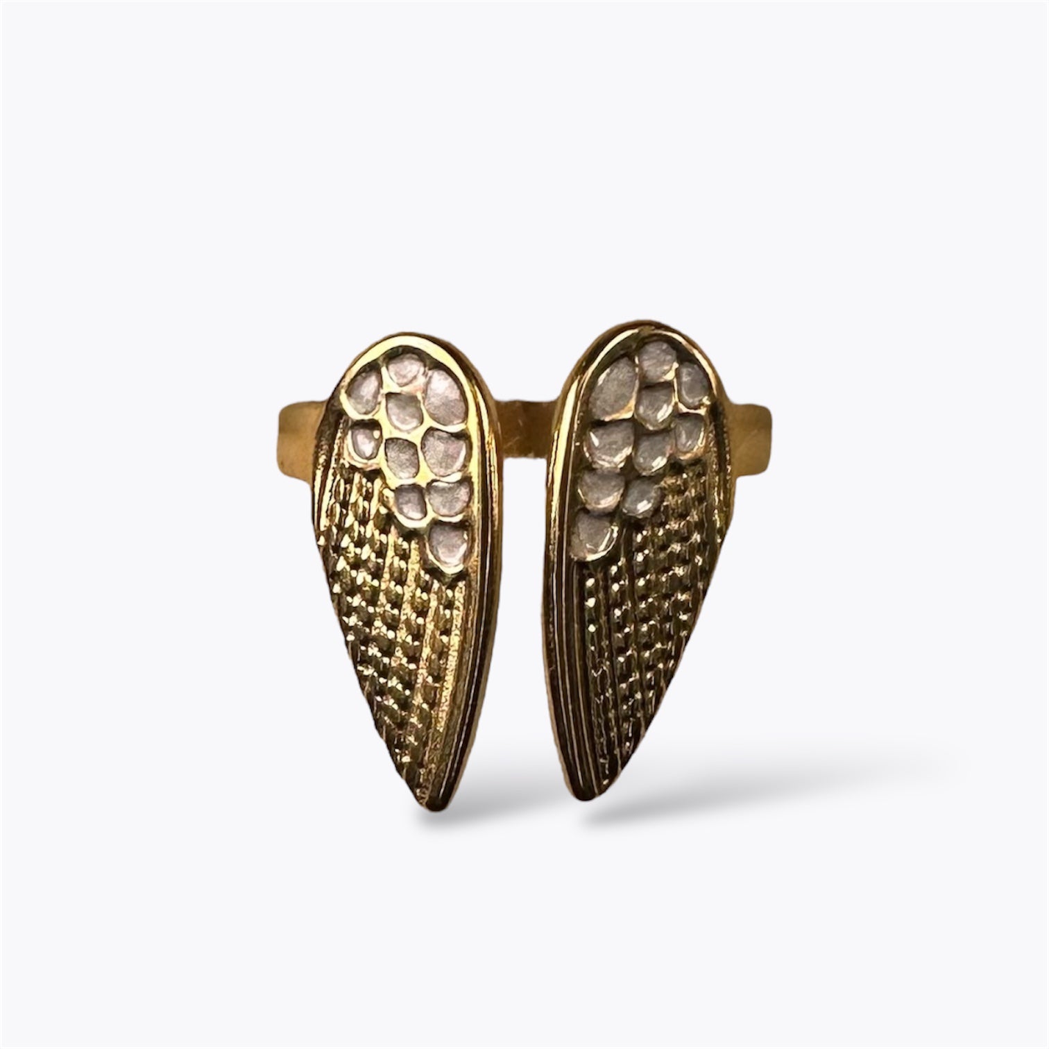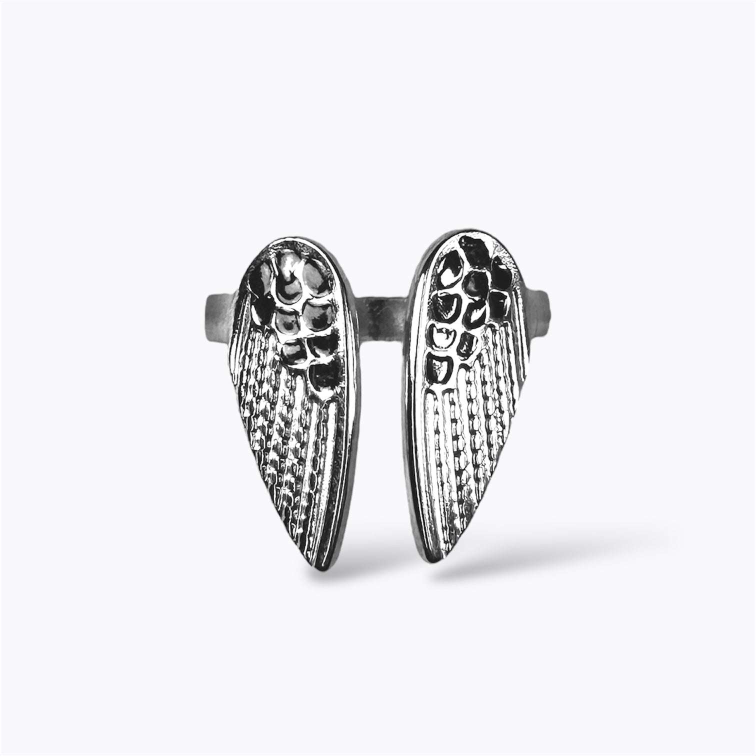 Delicate ring featuring graceful wings, inspired by celestial purity and protection, radiating heavenly charm and serene beauty.