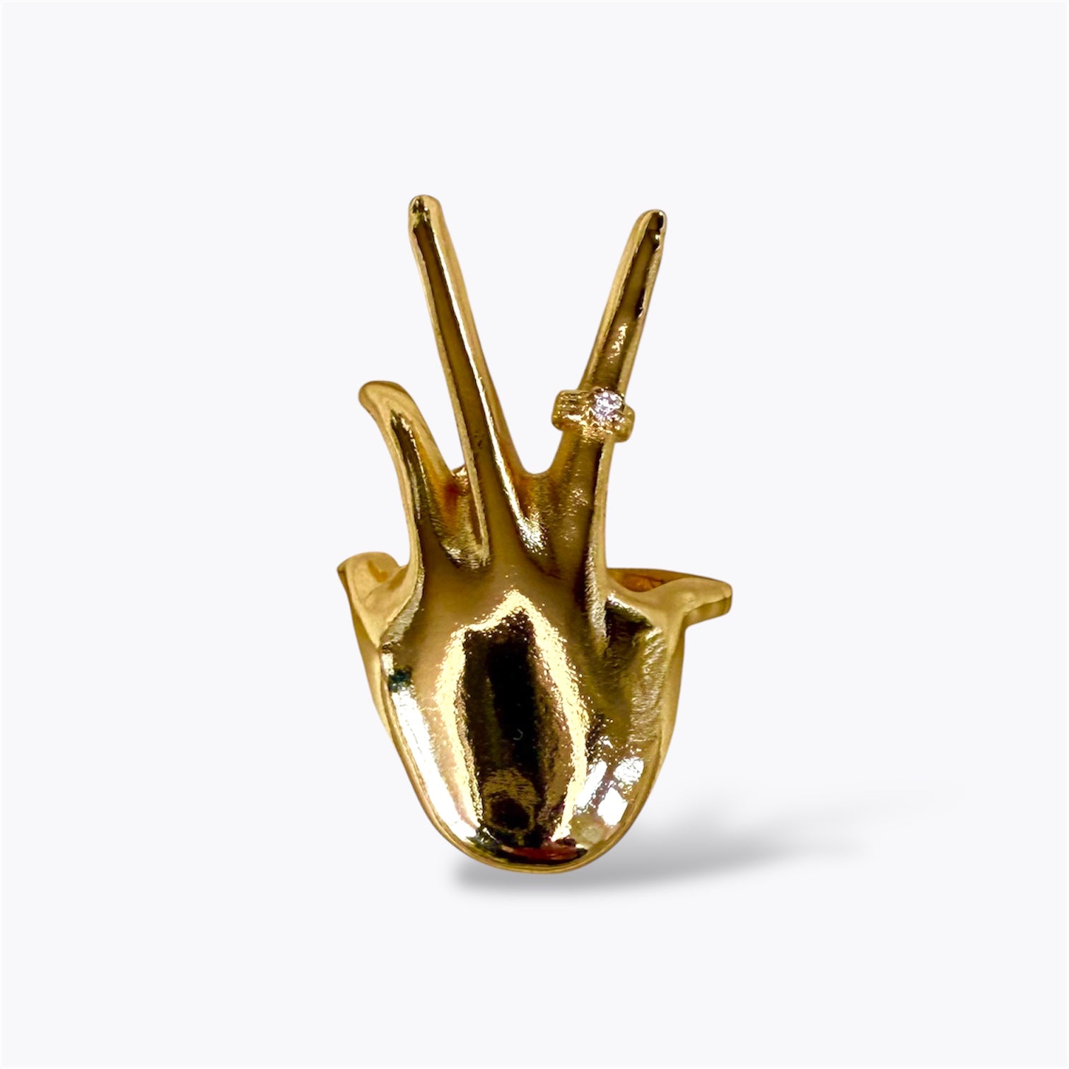A graceful and artistic design, this ring features a delicately sculpted hand. Symbolizing poise and sophistication, it’s a perfect accessory for those who appreciate unique, meaningful jewelry. Add a touch of refined charm to your collection with this captivating and elegant piece.