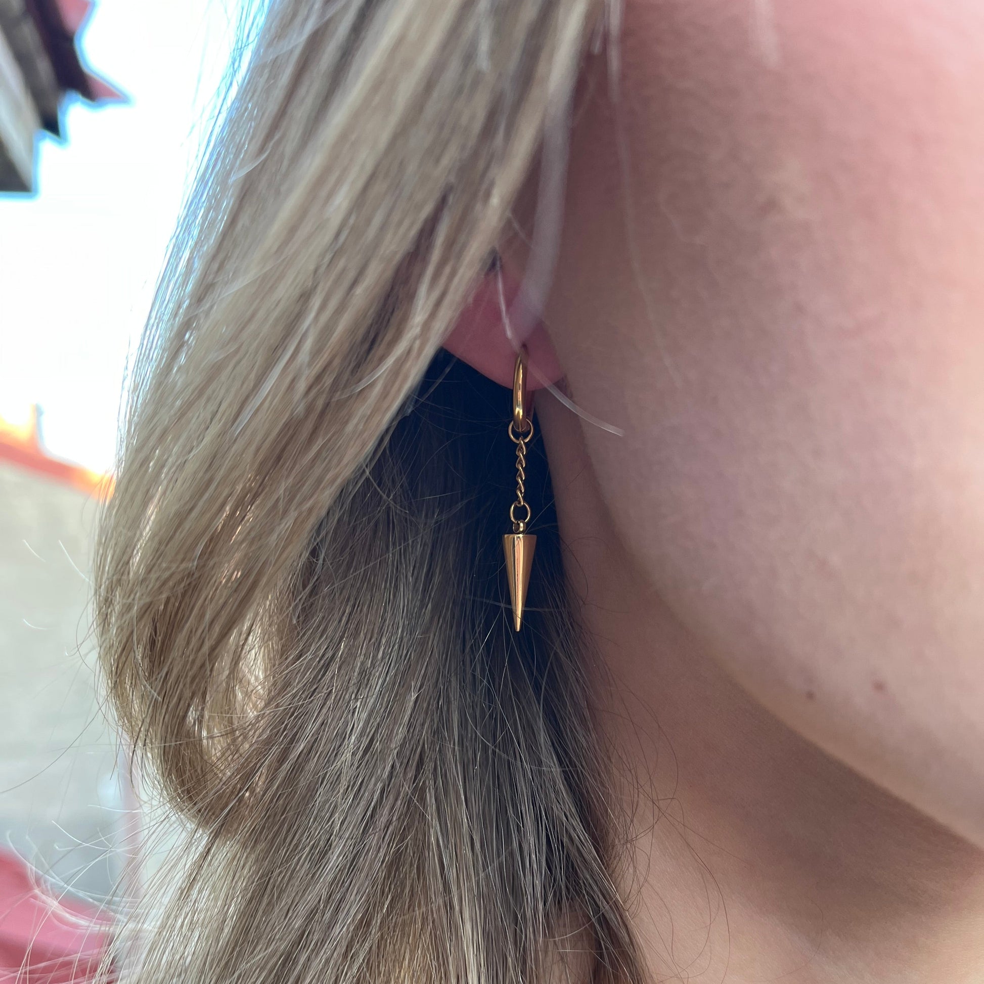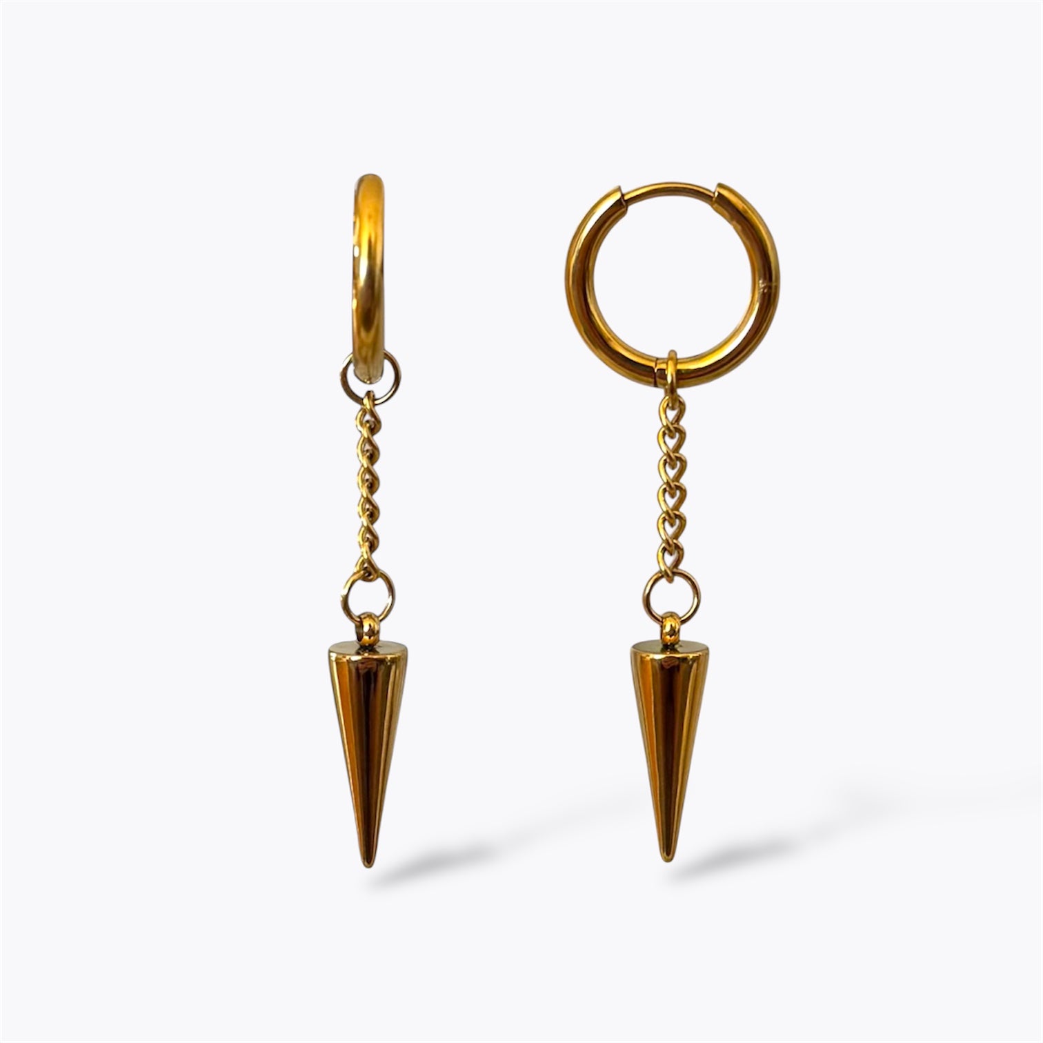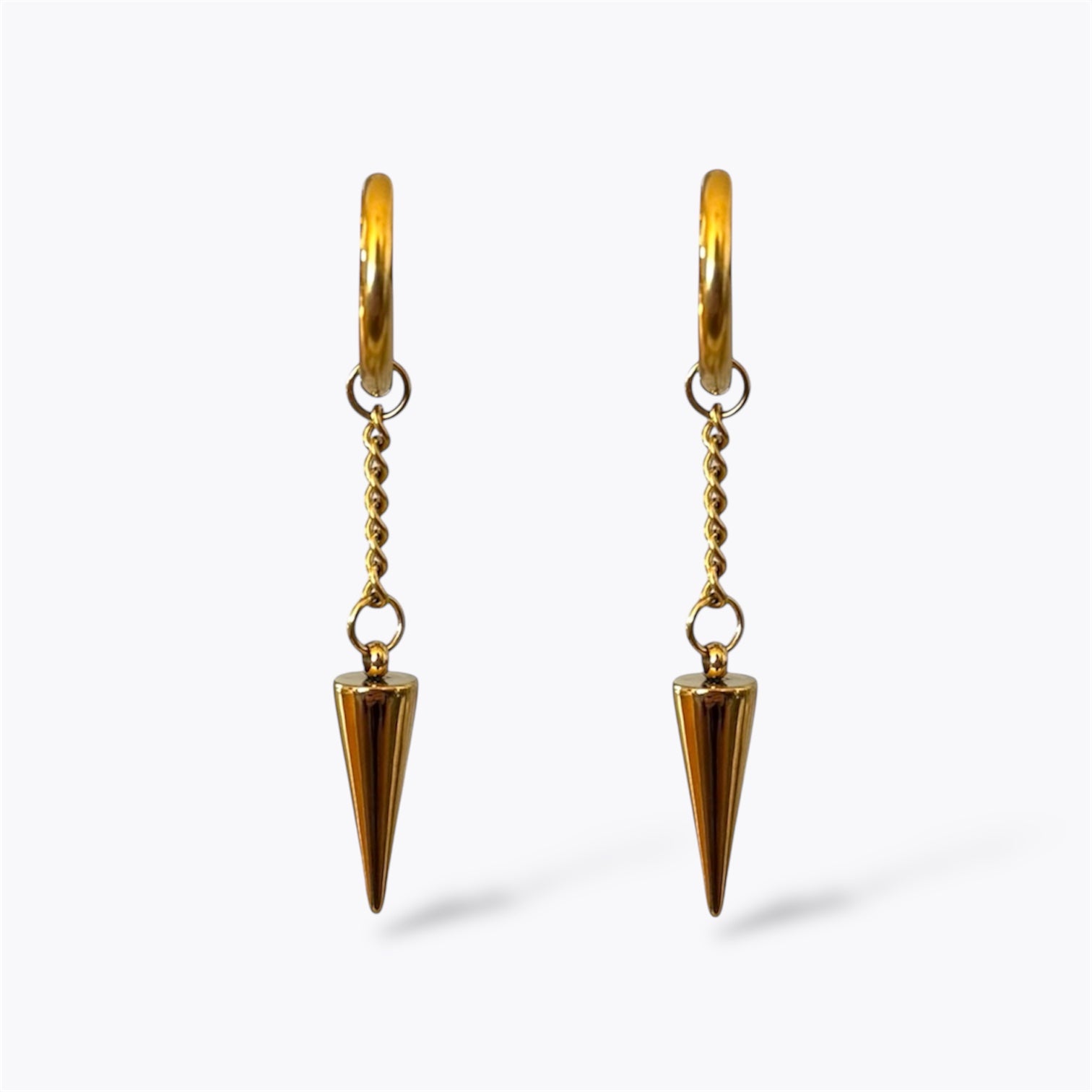 Bold earrings featuring sharp, dagger-like spikes for a fierce, edgy look. A striking blend of strength and modern elegance. Perfect for those who embrace powerful, confident style.