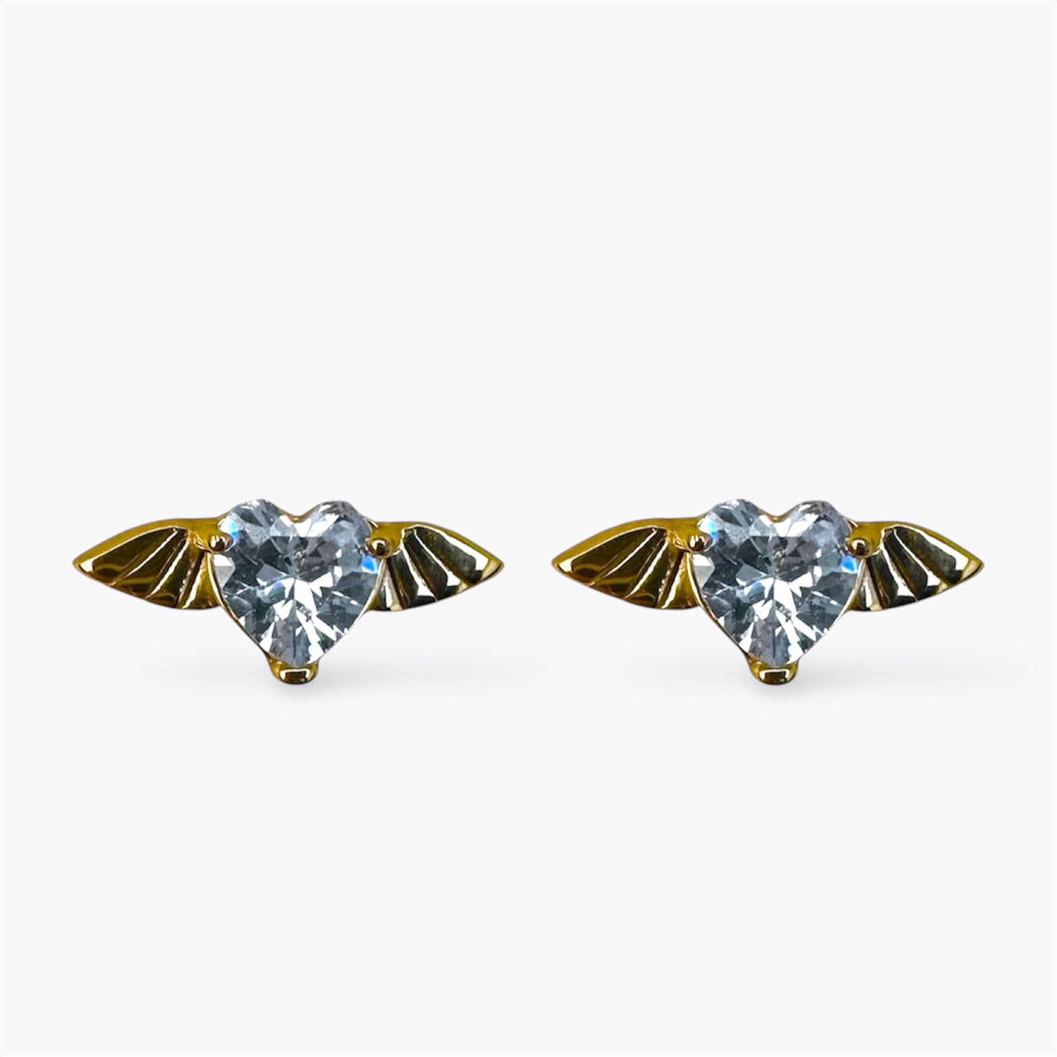 Delicate stud earrings featuring a heart with wings design. Elegant and lightweight, perfect for everyday wear.