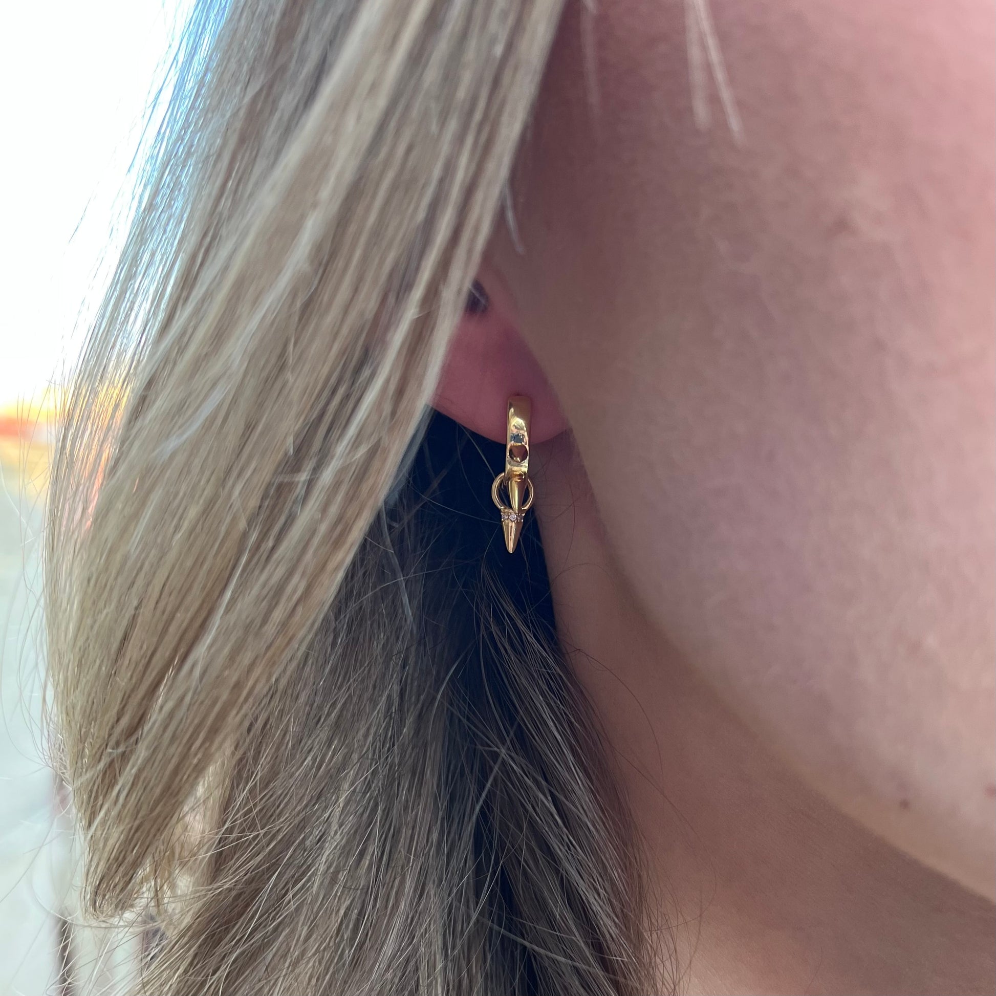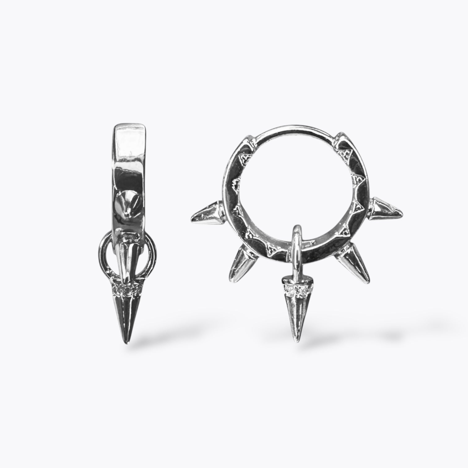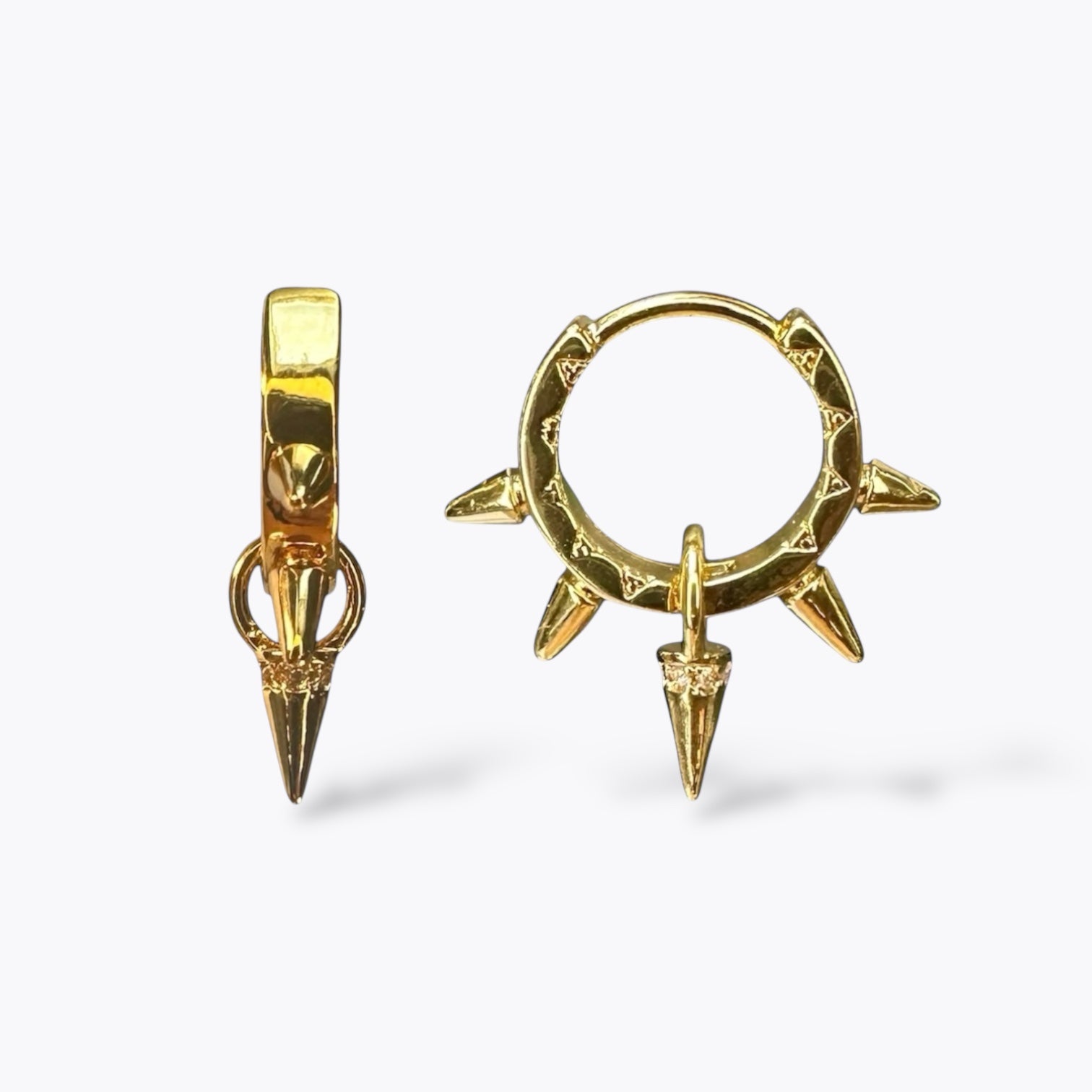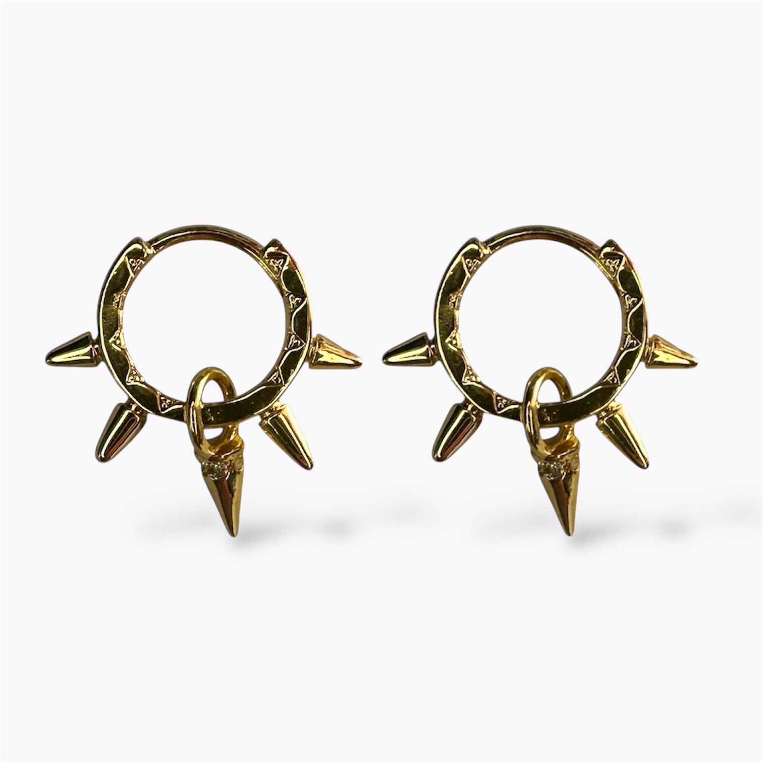 A bold statement of modern elegance, these earrings feature sleek spike accents designed to catch the light with every movement. Combining edgy design with a touch of luxury, they are perfect for adding a contemporary flair to any outfit. Make a striking impression with these stylish and versatile earrings.