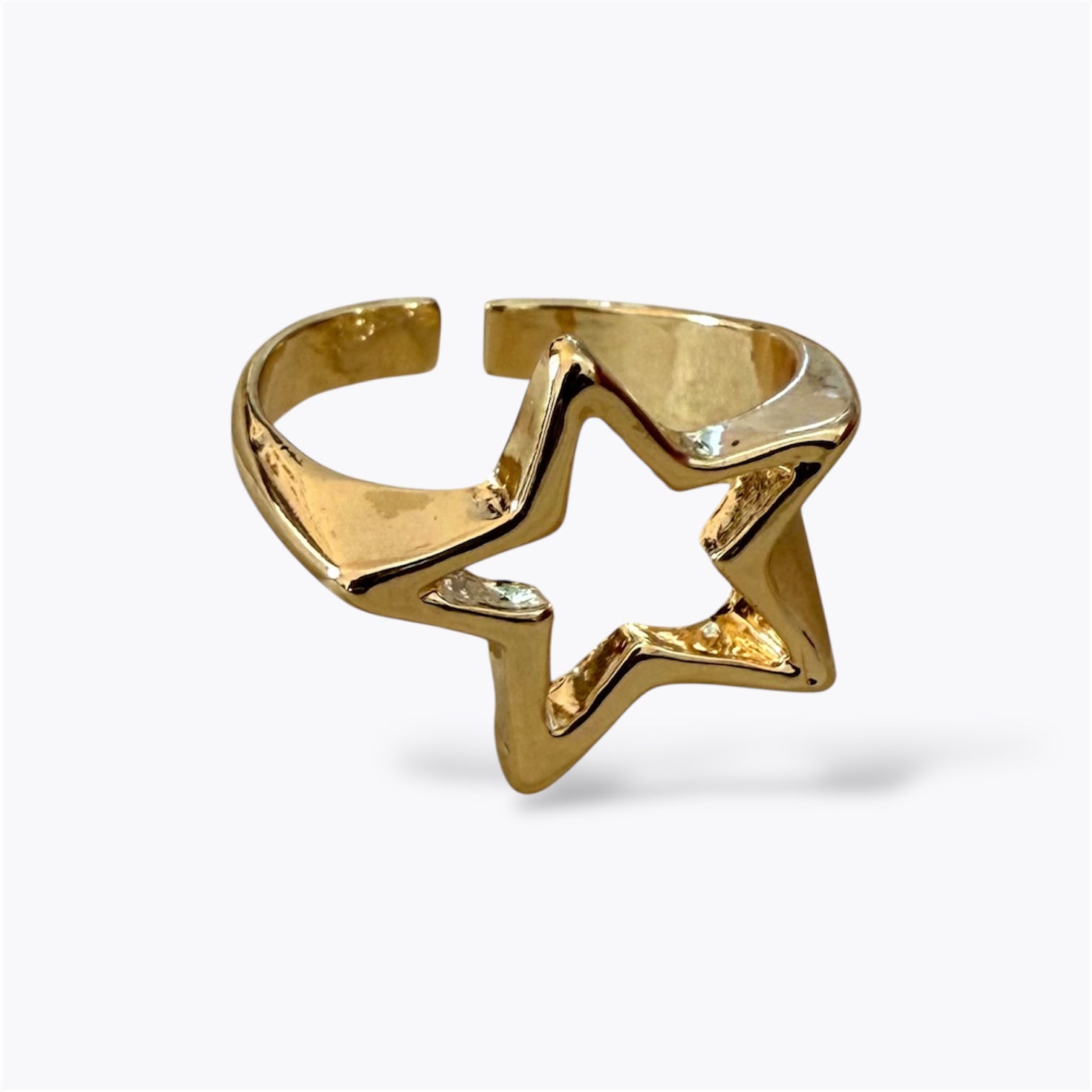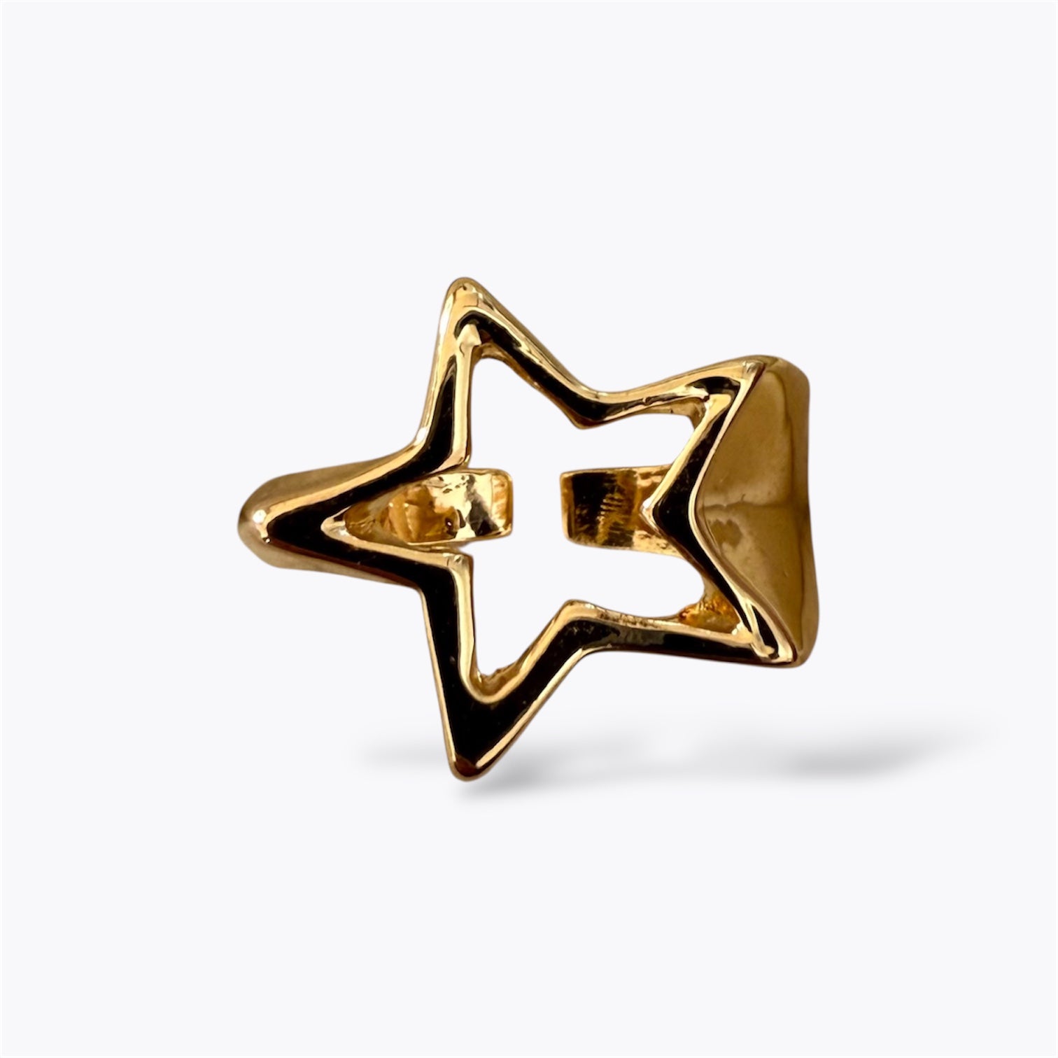 An elegant ring featuring a beautifully crafted star design. Sleek and timeless, it adds a touch of celestial charm to any look.